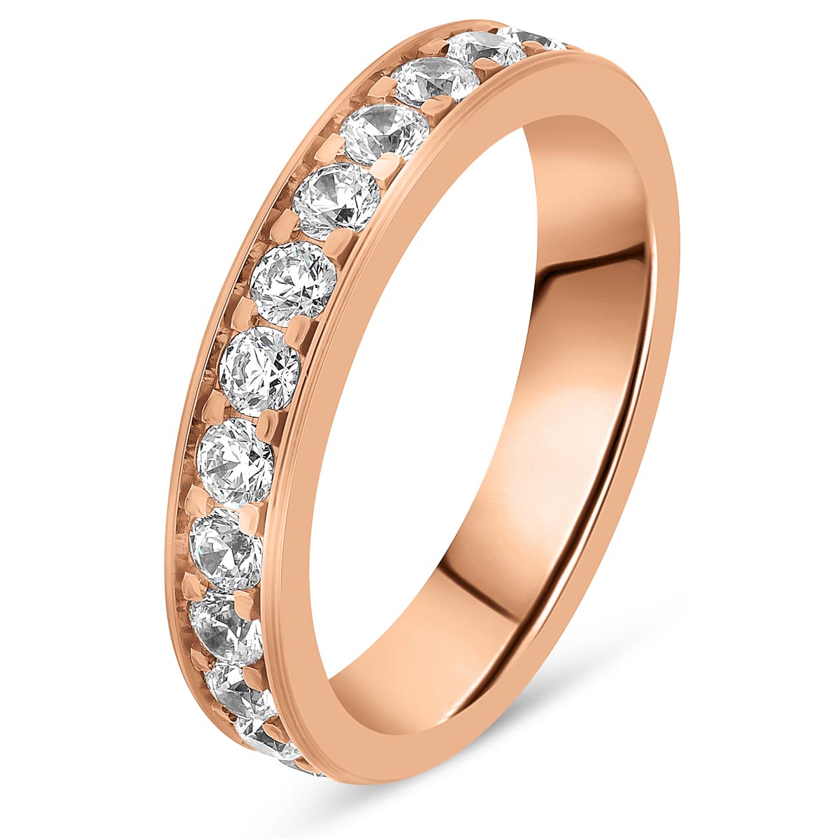 Magnifique alliance de mariage pour femme en or rose, avec diamants taille brillant de qualité HSI, tour complet serti rail grain. Existe en plusieurs versions de 0.50 à 1 carats. L'intérieur est massif pour permettre la gravure et arrondi pour plus de confort.