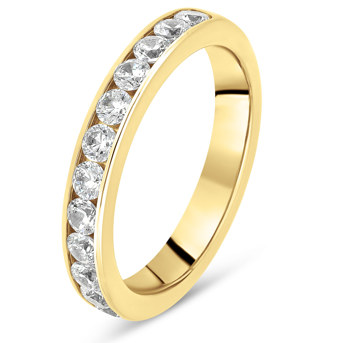 Cette alliance de mariage pour femme en or jaune séduit par son élégance classique et sa brillance continue. Sertie en demi-tour de diamants taille brillant de qualité HSI ou GVS, elle offre un éclat raffiné tout en conservant une grande sobriété grâce à son sertissage rail fin.
