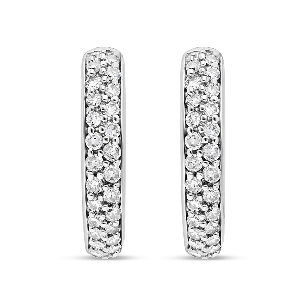 Boucles d'oreilles créoles en or 750/1000 serties d’un pavage de diamants. La largeur du pavage est de 2,7 mm. La boucle fait 13 mm sur 14 mm.