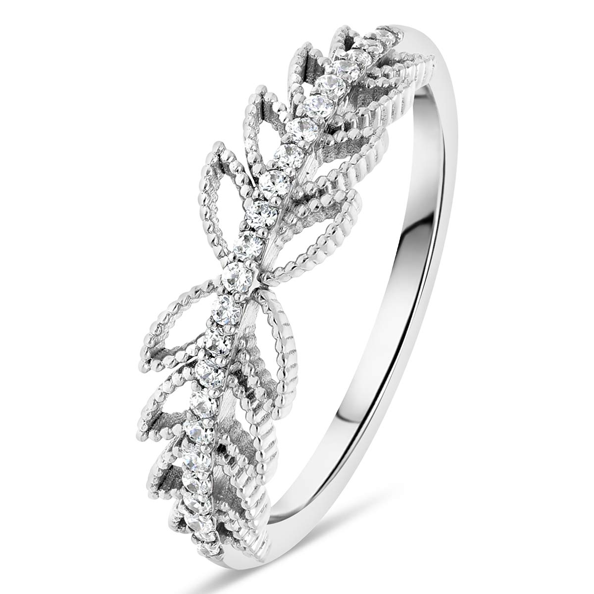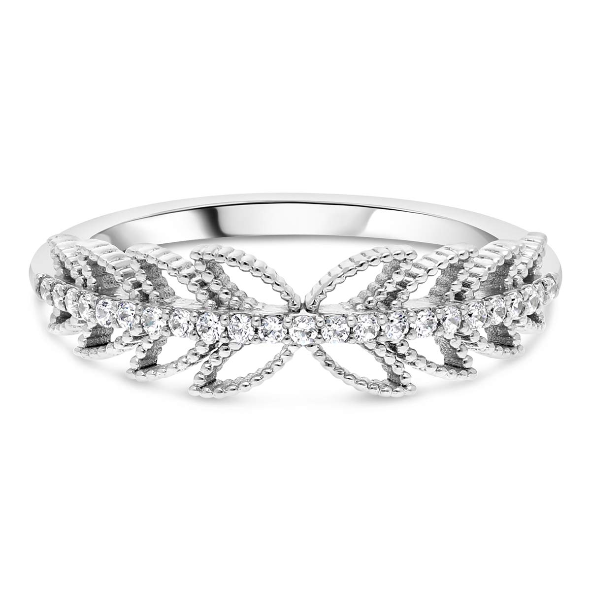 Délicate et poétique, l’alliance Lauriers ajourés est réalisée en or blanc et sublimée par un anneau fin pavé de diamants en demi-tour, apportant une brillance subtile et continue. Sur la partie supérieure, un motif floral ajouré en feuilles de laurier attire le regard et confère à la bague une élégance naturelle.