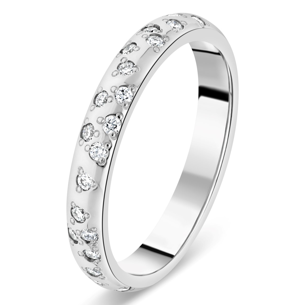 Alliance de mariage demi jonc "Stardust" en or blanc 750/1000 (18 carats) est sublimée par de petits diamants sertis telle une poussière d'étoile sur sa partie supérieure. Grâce à son intérieur arrondi elle est très confortable au doigt.