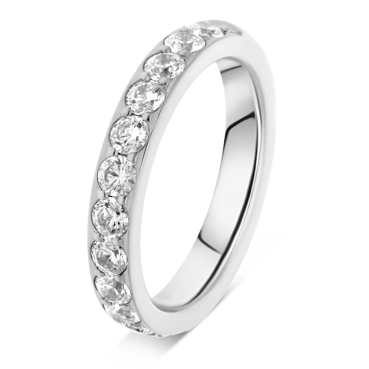 Sublime alliance de mariage pour femme en platine, avec diamants taille brillant de qualité HSI ou GVS, demi tour serti mini griffes. Existe en plusieurs versions de 0.34 à 0.84 carat. L'intérieur est massif pour permettre la gravure et arrondi pour plus de confort.