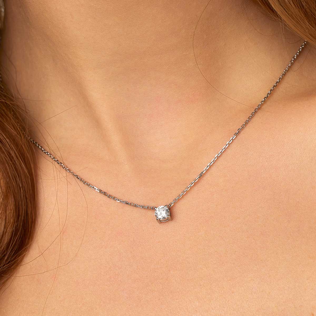 Un grand classique de pendentifs diamants, le pendentif Maeva est monté sur 4 griffes . La monture en or 750/1000 est de style minimaliste pour mettre en valeur la beauté de la pierre. Il est disponible en or jaune, blanc et rose.